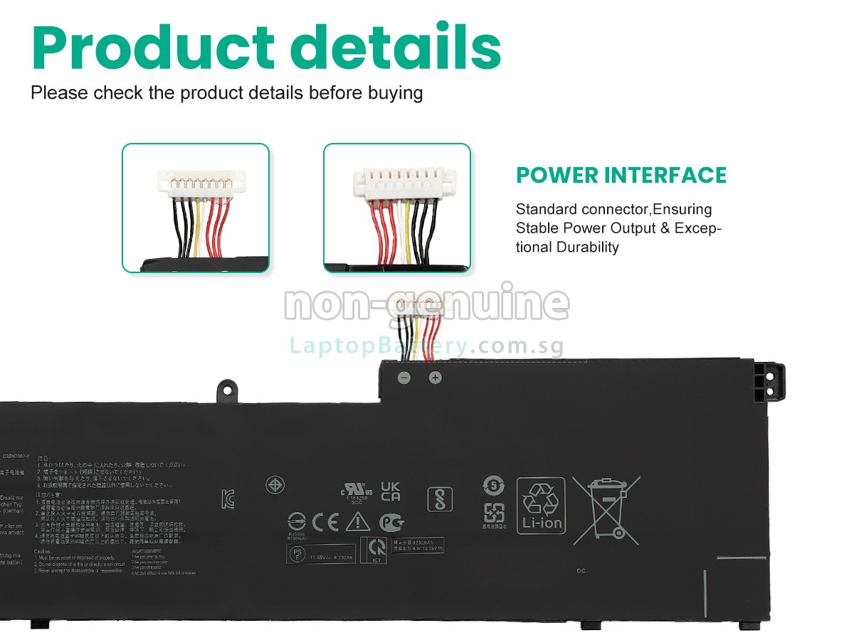 Welcome your patronage and thank you for purchasing this high quality replacement Asus UP6502 laptop battery at Laptopbattery.com.sg! Before placing an order, please make sure that the part number of your old Asus UP6502 battery is listed as below and has the same shape as our replacement UP6502 battery's images (please view the larger images for details).