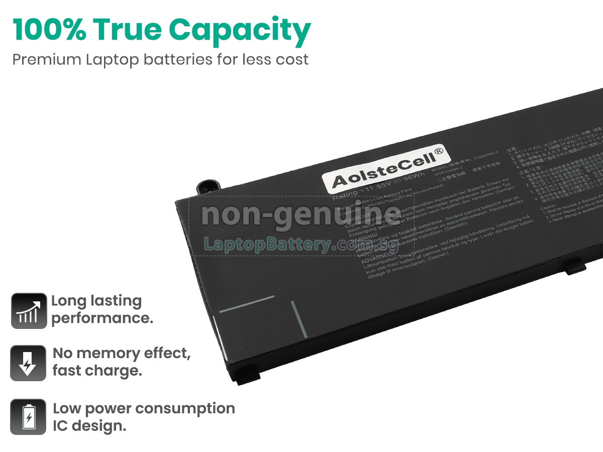 Buy with confidence! Our Website is your source for high quality Asus laptop batteries. This brand new 96Wh(6 cells) replacement Asus UP6502 Li-Polymer battery is made with high quality cells from Samsung. Each replacement battery for Asus UP6502 laptop has been tested on the Asus system before being dispatched and is 100% compatible with the original manufacturer's specification. When you buy our replacement Asus UP6502 battery, you're buying trust!