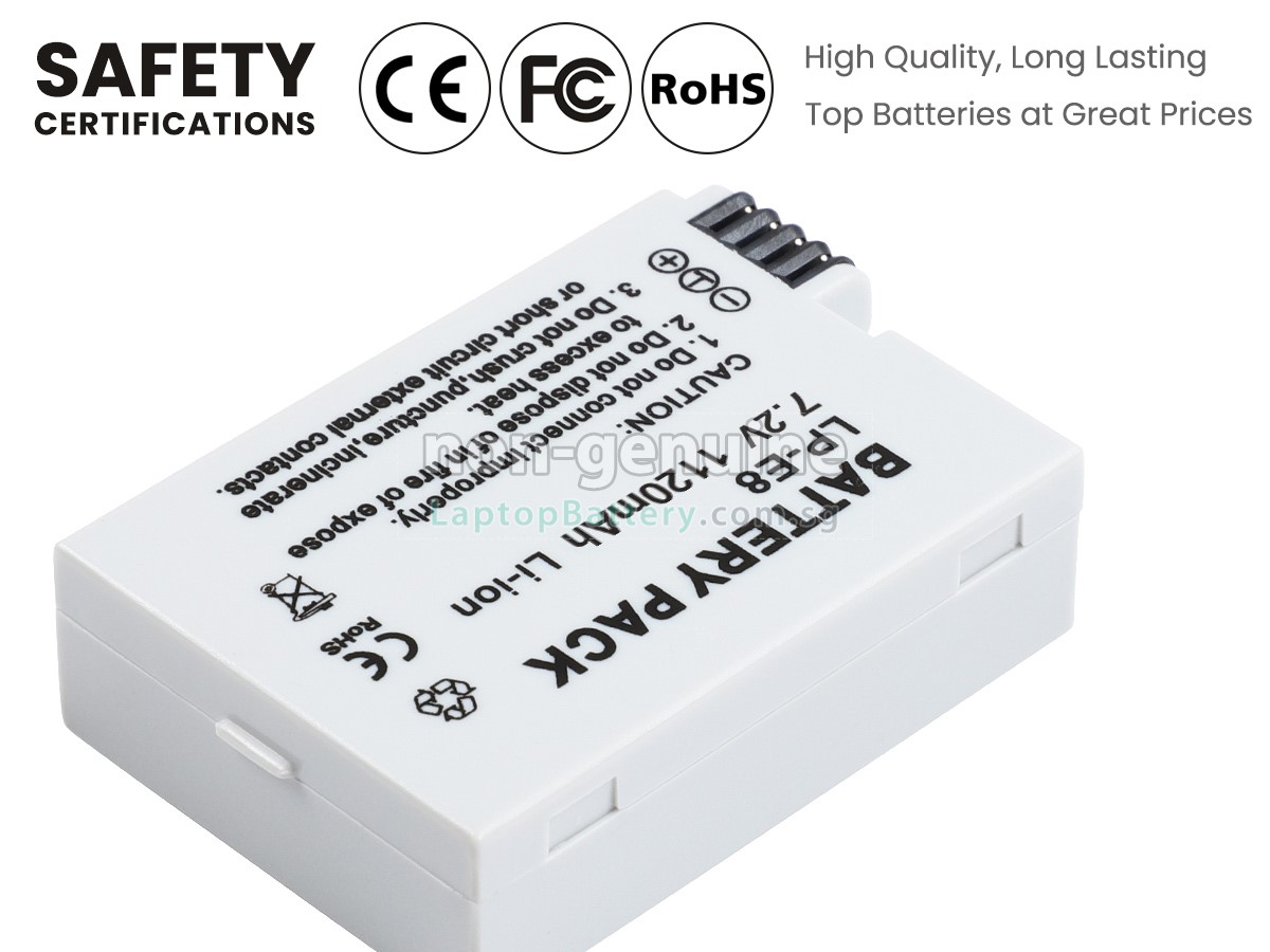 Welcome your patronage and thank you for purchasing this high quality replacement Canon EOS 550D battery at Laptopbattery.com.sg! Before placing an order, please make sure that the part number of your old Canon EOS 550D battery is listed as below and has the same shape as our replacement EOS 550D battery's images (please view the larger images for details).