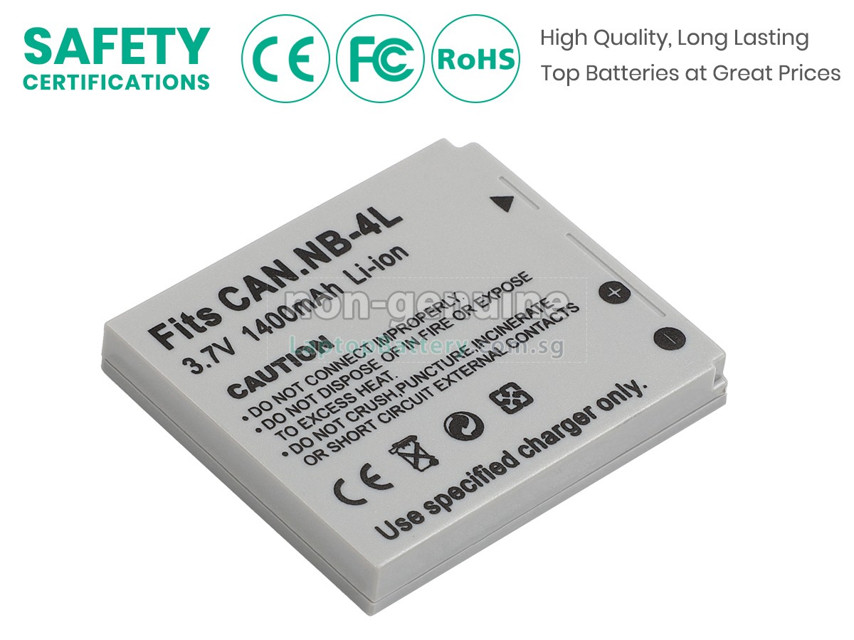 Welcome your patronage and thank you for purchasing this high quality replacement Canon NB-4L battery at Laptopbattery.com.sg! Before placing an order, please make sure that the part number of your old Canon NB-4L battery is listed as below and has the same shape as our replacement NB-4L battery's images (please view the larger images for details).