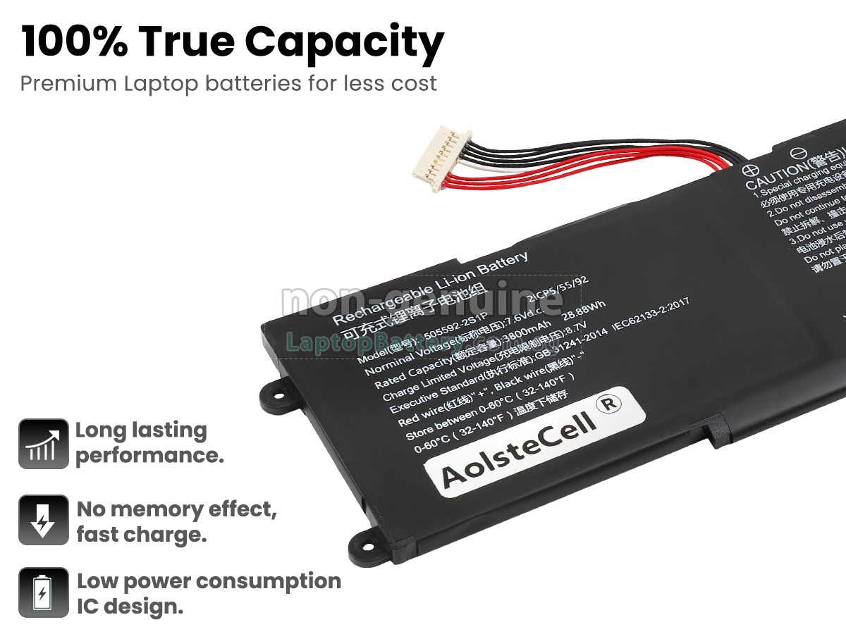 Buy with confidence! Our Website is your source for high quality CHUWI laptop batteries. This brand new 28.88Wh(2 cells) replacement CHUWI 505592-2S1P Li-Polymer battery is made with high quality cells from Samsung. Each replacement battery for CHUWI 505592-2S1P laptop has been tested on the CHUWI system before being dispatched and is 100% compatible with the original manufacturer's specification. When you buy our replacement CHUWI 505592-2S1P battery, you're buying trust!