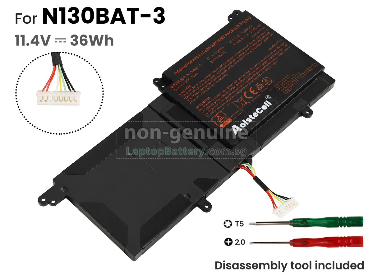 Welcome your patronage and thank you for purchasing this high quality replacement Clevo 6-87-N130S-3U9A laptop battery at Laptopbattery.com.sg! Before placing an order, please make sure that the part number of your old Clevo 6-87-N130S-3U9A battery is listed as below and has the same shape as our replacement 6-87-N130S-3U9A battery's images (please view the larger images for details).