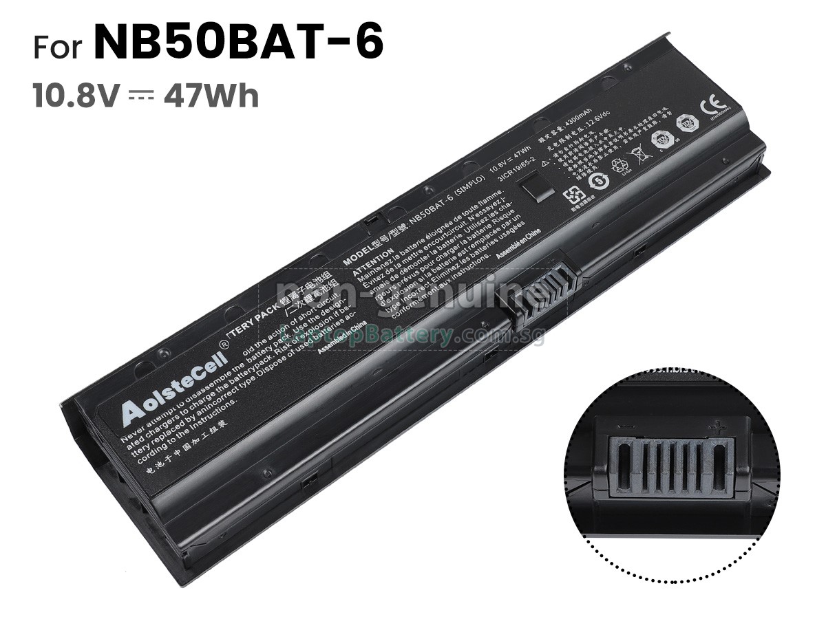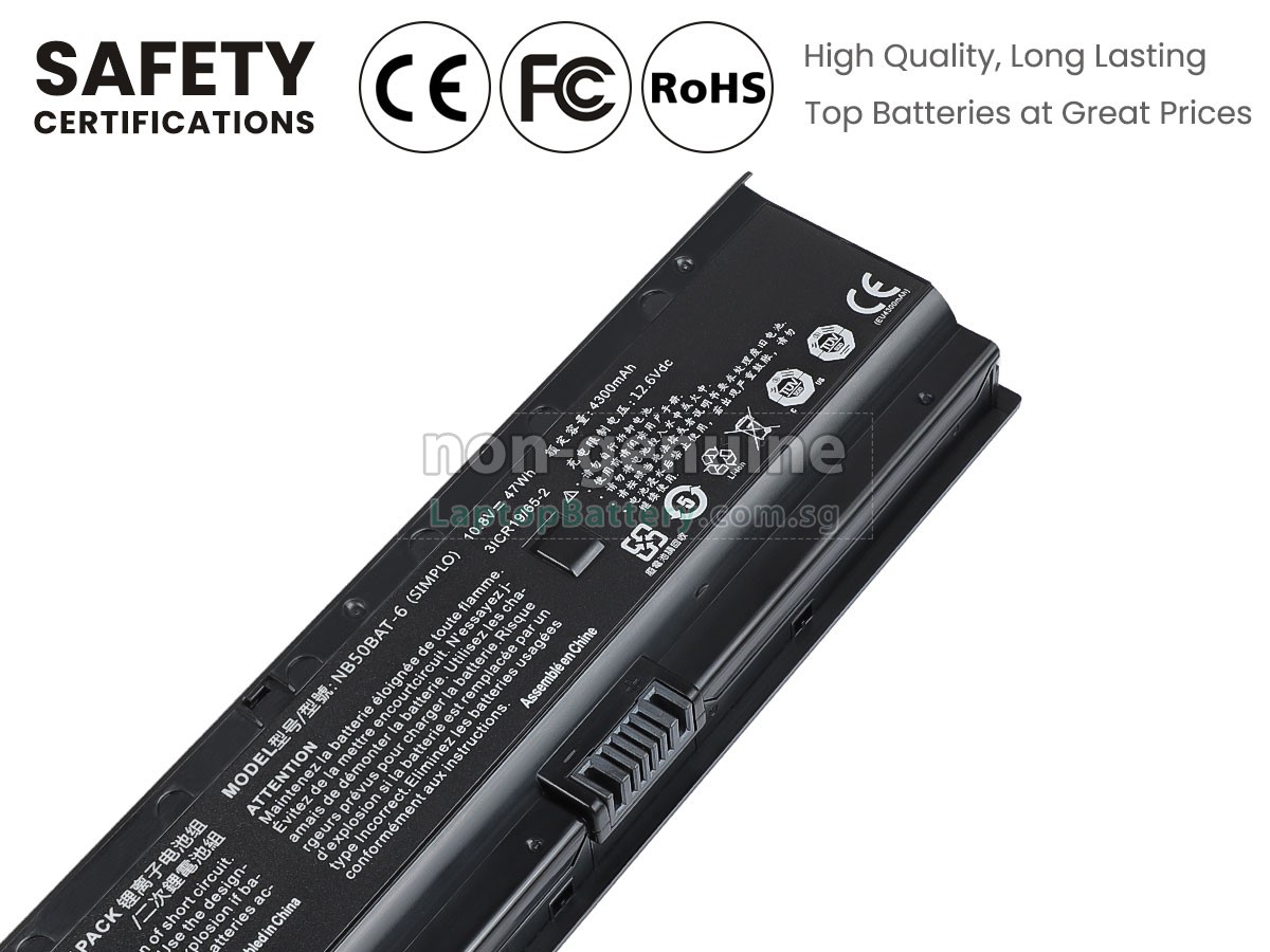 Welcome your patronage and thank you for purchasing this high quality replacement Clevo NB50TK1 laptop battery at Laptopbattery.com.sg! Before placing an order, please make sure that the part number of your old Clevo NB50TK1 battery is listed as below and has the same shape as our replacement NB50TK1 battery's images (please view the larger images for details).