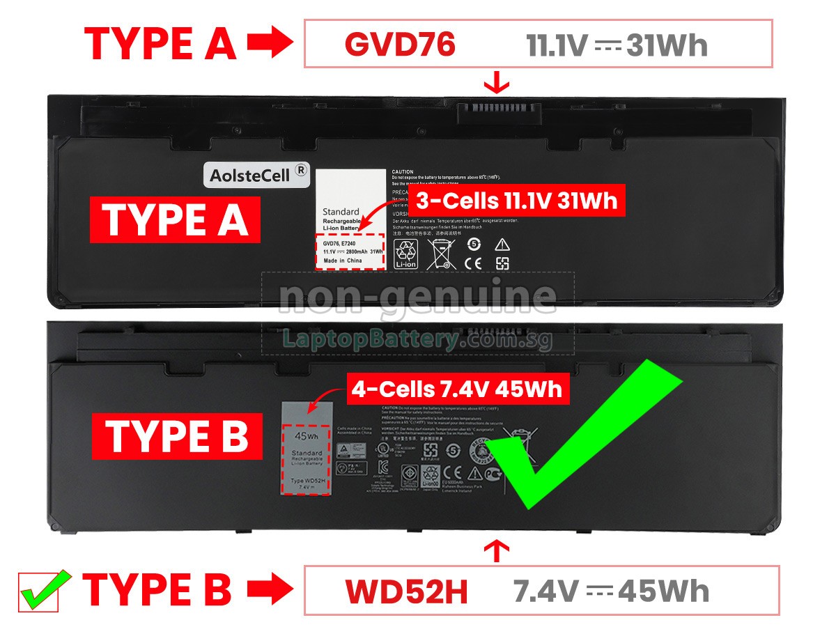 A: First, find out the part number of your old battery or the model name of your laptop (e.g. 'Dell 0KWFFN') and match with our product compatibility table. Second, please compare the old battery with our product images to make sure their shapes are the same. Lastly, check the voltage (rating) is the same as the old one. For more details please click How to find one correct battery for my laptop?