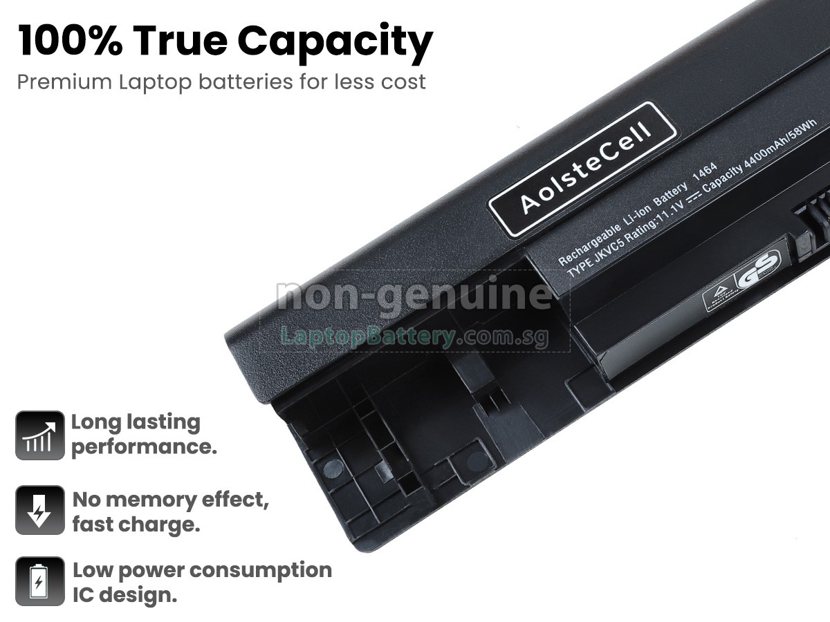 Welcome your patronage and thank you for purchasing this high quality replacement Dell 9JJGJ laptop battery at Laptopbattery.com.sg! Before placing an order, please make sure that the part number of your old Dell 9JJGJ battery is listed as below and has the same shape as our replacement 9JJGJ battery's images (please view the larger images for details).