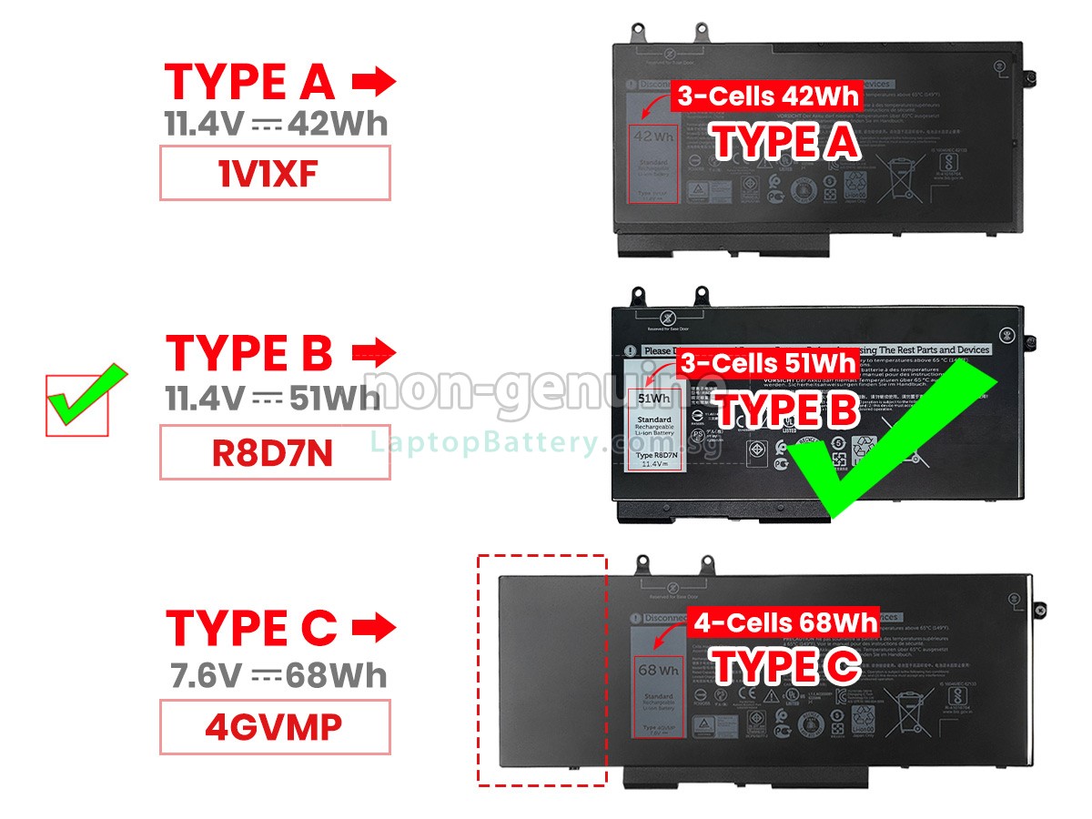 Welcome your patronage and thank you for purchasing this high quality replacement Dell 9JRYT laptop battery at Laptopbattery.com.sg! Before placing an order, please make sure that the part number of your old Dell 9JRYT battery is listed as below and has the same shape as our replacement 9JRYT battery's images (please view the larger images for details).