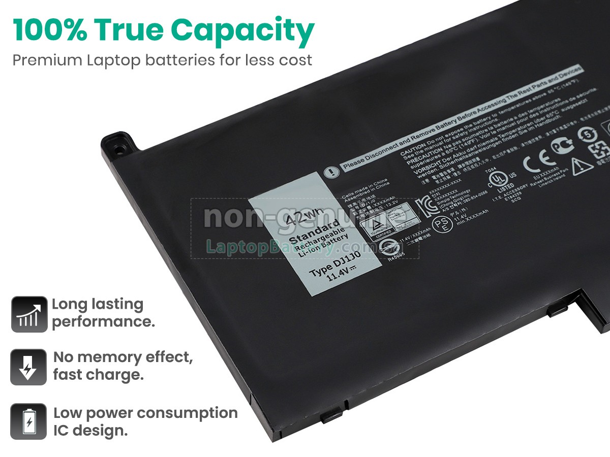 Buy with confidence! Our Website is your source for high quality Dell laptop batteries. This brand new 60Wh(4 cells) replacement Dell DJ1J0 Li-Polymer battery is made with high quality cells from Samsung. Each replacement battery for Dell DJ1J0 laptop has been tested on the Dell system before being dispatched and is 100% compatible with the original manufacturer's specification. When you buy our replacement Dell DJ1J0 battery, you're buying trust!