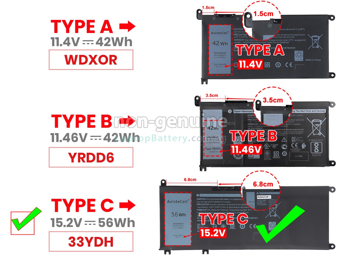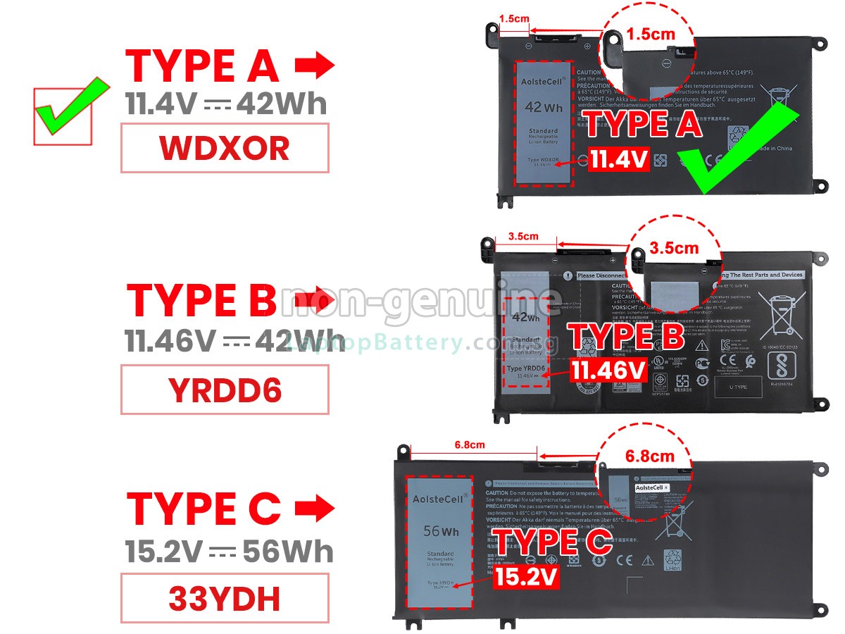 A: First, find out the part number of your old battery or the model name of your laptop (e.g. 'Dell P70F002') and match with our product compatibility table. Second, please compare the old battery with our product images to make sure their shapes are the same. Lastly, check the voltage (rating) is the same as the old one. For more details please click How to find one correct battery for my laptop?