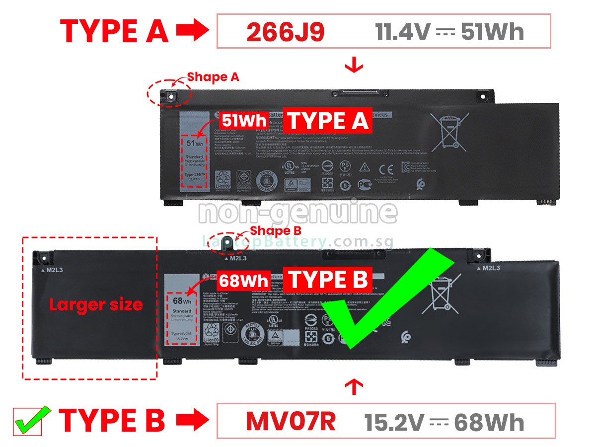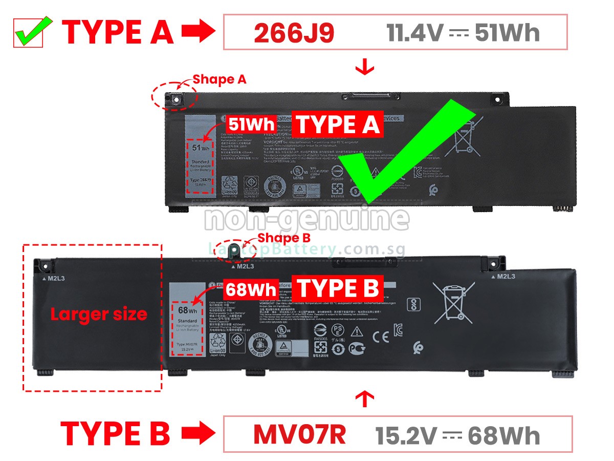 Welcome your patronage and thank you for purchasing this high quality replacement Dell W5W19 laptop battery at Laptopbattery.com.sg! Before placing an order, please make sure that the part number of your old Dell W5W19 battery is listed as below and has the same shape as our replacement W5W19 battery's images (please view the larger images for details).