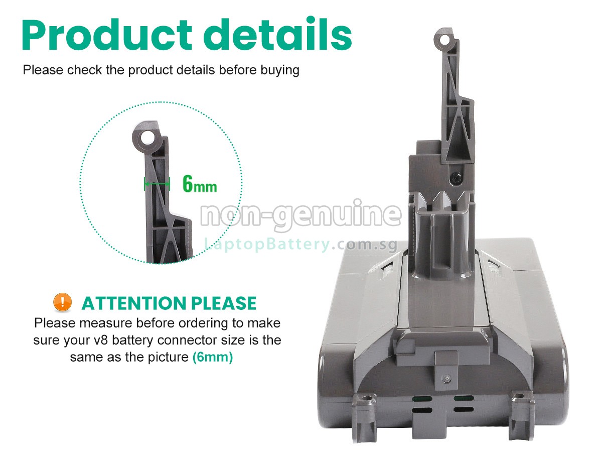 Welcome your patronage and thank you for purchasing this high quality replacement Dyson SV25 vacuum cleaner battery at Laptopbattery.com.sg! Before placing an order, please make sure that the part number of your old Dyson SV25 battery is listed as below and has the same shape as our replacement SV25 battery's images (please view the larger images for details).