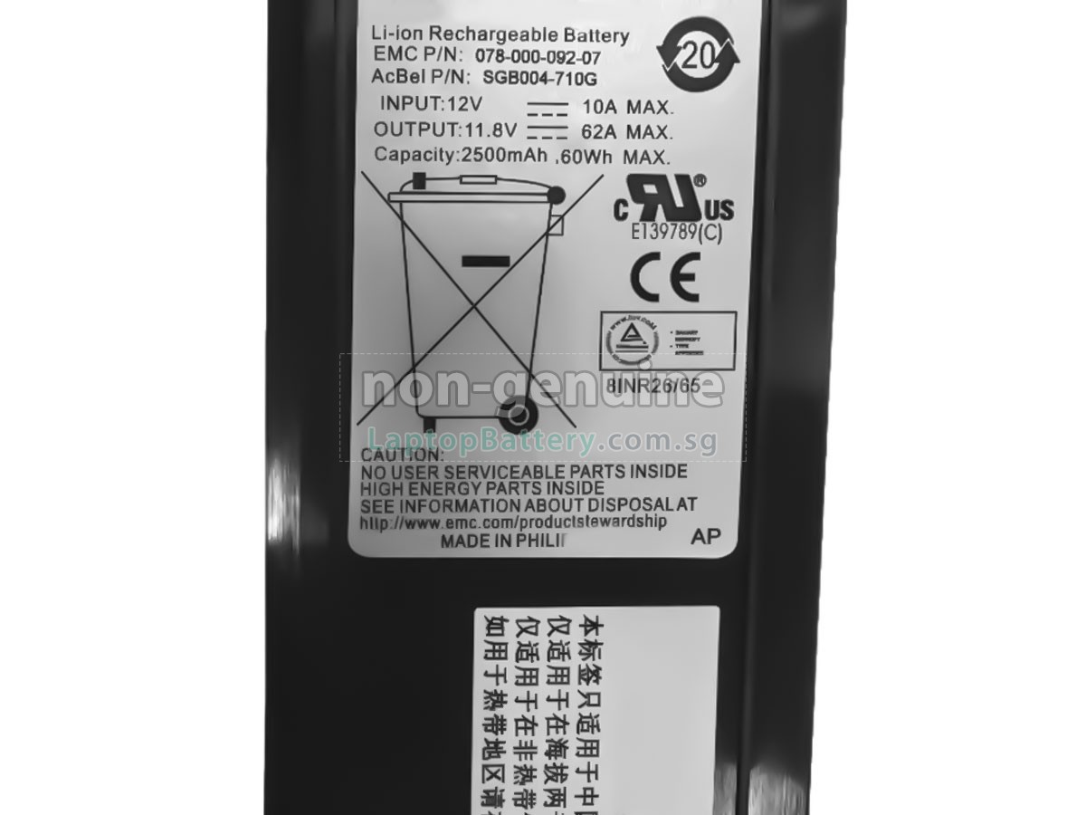 Buy with confidence! Our Website is your source for high quality EMC batteries. This brand new 2500mAh(8 cells) replacement EMC 078-000-123 Li-ion battery is made with high quality cells from Samsung. Each replacement battery for EMC 078-000-123 has been tested on the EMC system before being dispatched and is 100% compatible with the original manufacturer's specification. When you buy our replacement EMC 078-000-123 battery, you're buying trust!