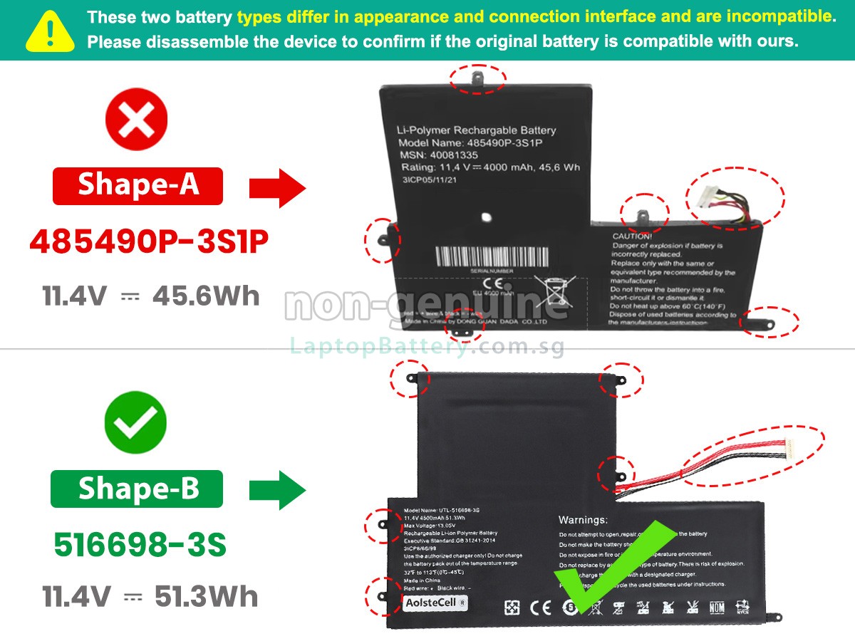 A: First, find out the part number of your old battery or the model name of your laptop (e.g. 'EVOO EVC156-1BL') and match with our product compatibility table. Second, please compare the old battery with our product images to make sure their shapes are the same. Lastly, check the voltage (rating) is the same as the old one. For more details please click How to find one correct battery for my laptop?