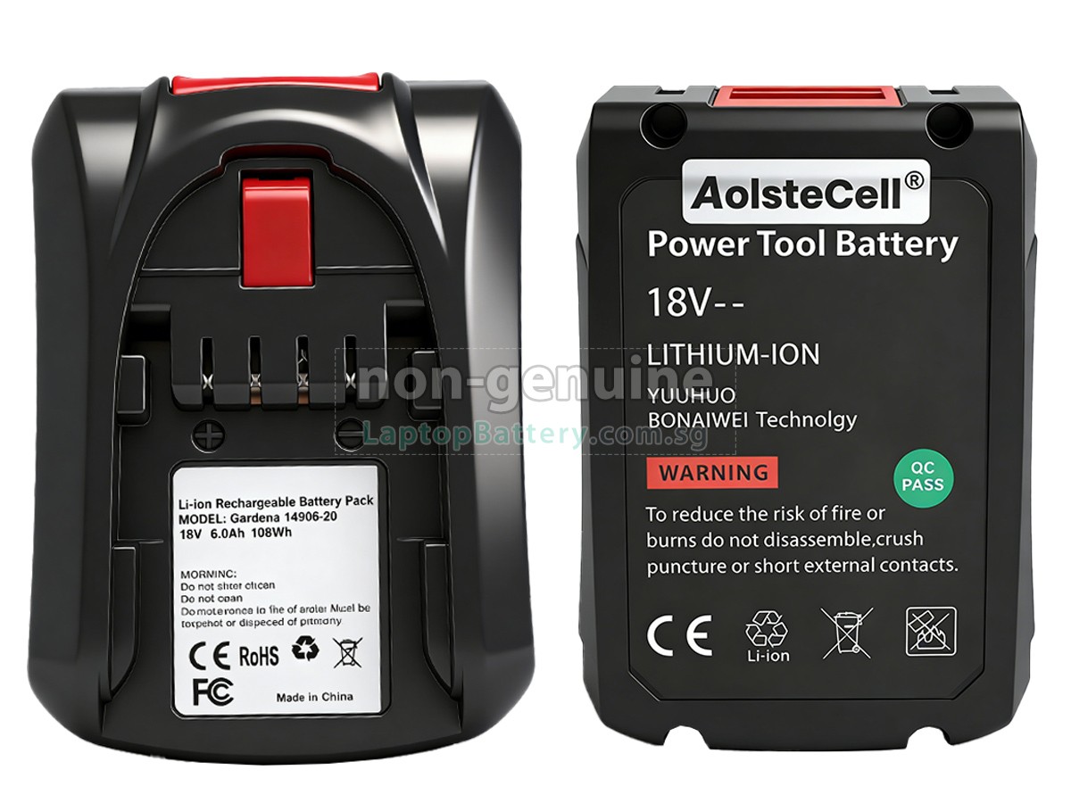Welcome your patronage and thank you for purchasing this high quality replacement Gardena 14600-20 power tools battery at Laptopbattery.com.sg! Before placing an order, please make sure that the part number of your old Gardena 14600-20 battery is listed as below and has the same shape as our replacement 14600-20 battery's images (please view the larger images for details).