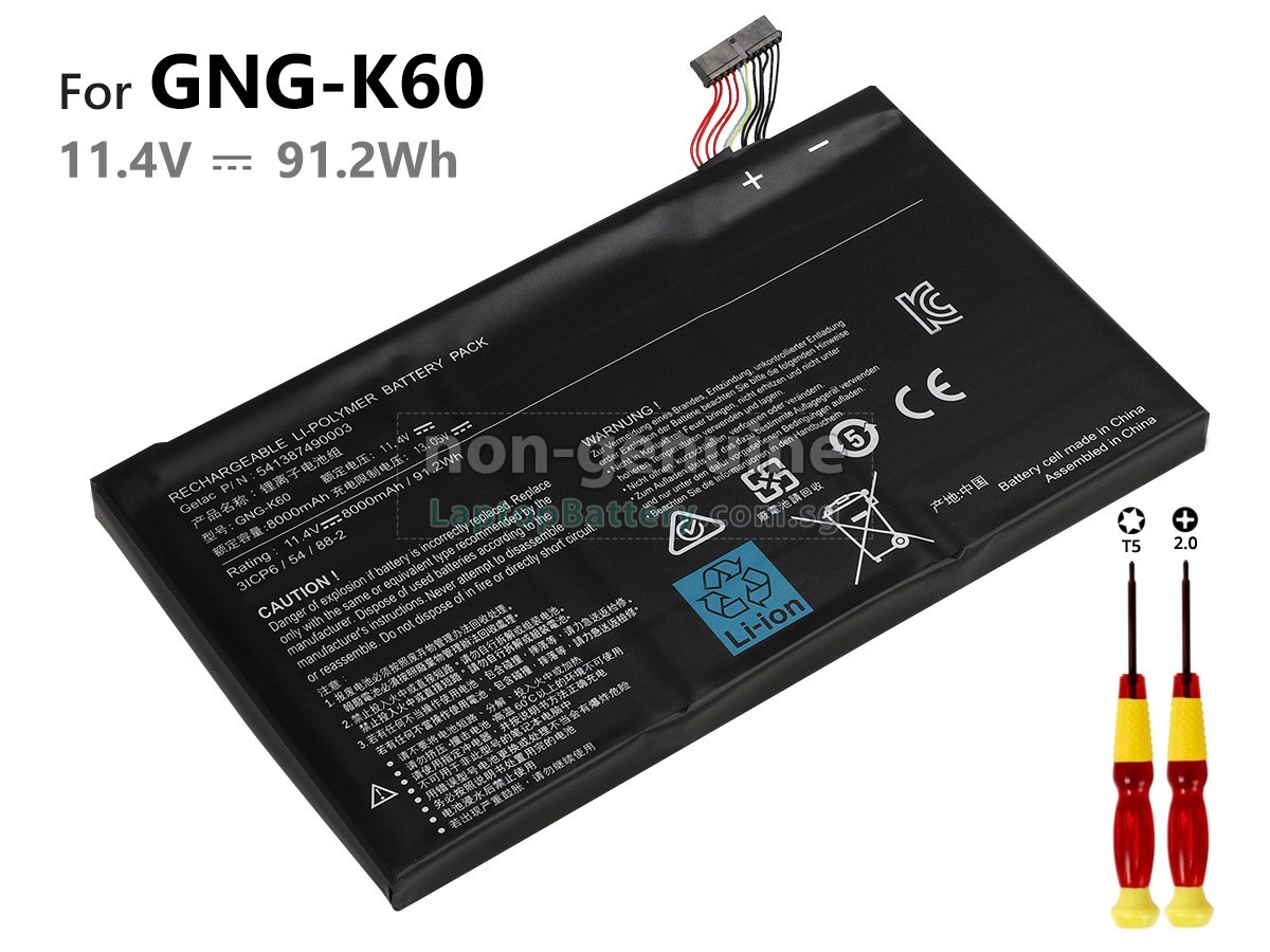 Buy with confidence! Our Website is your source for high quality Gigabyte laptop batteries. This brand new 91.2Wh(6 cells) replacement Gigabyte GNG-K60 Li-Polymer battery is made with high quality cells from Samsung. Each replacement battery for Gigabyte GNG-K60 laptop has been tested on the Gigabyte system before being dispatched and is 100% compatible with the original manufacturer's specification. When you buy our replacement Gigabyte GNG-K60 battery, you're buying trust!