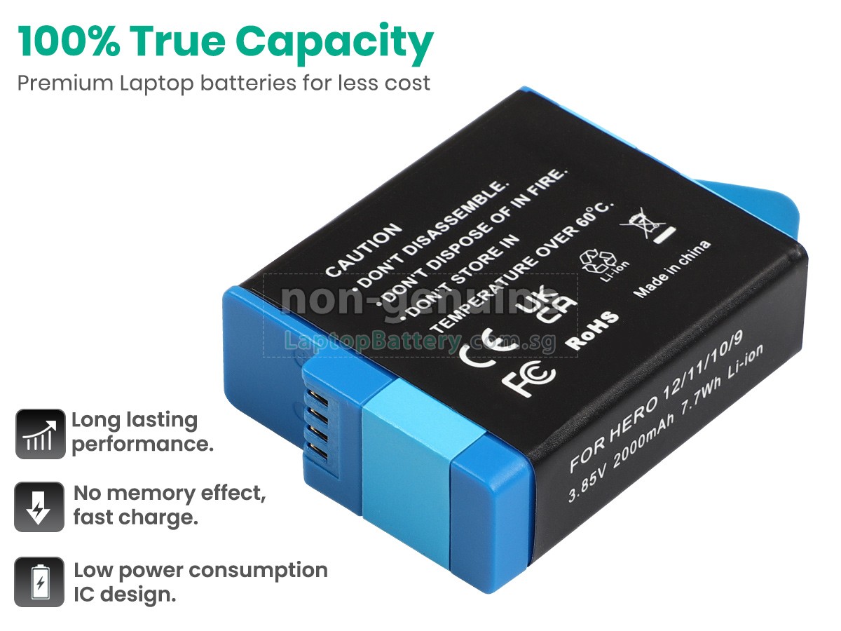 Welcome your patronage and thank you for purchasing this high quality replacement GoPro HERO9 battery at Laptopbattery.com.sg! Before placing an order, please make sure that the part number of your old GoPro HERO9 battery is listed as below and has the same shape as our replacement HERO9 battery's images (please view the larger images for details).