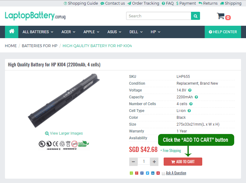 To place an order from laptopbattery.com.sg is easy. We have provided here with a guideline to assist you on how to place an order with us.