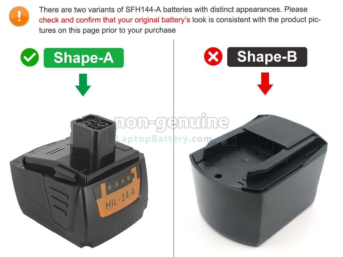 Welcome your patronage and thank you for purchasing this high quality replacement Hilti 14.4V SF144-A power tools battery at Laptopbattery.com.sg! Before placing an order, please make sure that the part number of your old Hilti 14.4V SF144-A battery is listed as below and has the same shape as our replacement 14.4V SF144-A battery's images (please view the larger images for details).