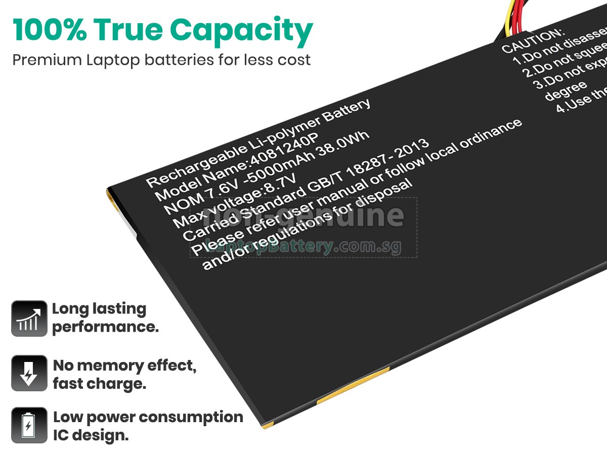 Welcome your patronage and thank you for purchasing this high quality replacement HIPAA 4081240P laptop battery at Laptopbattery.com.sg! Before placing an order, please make sure that the part number of your old HIPAA 4081240P battery is listed as below and has the same shape as our replacement 4081240P battery's images (please view the larger images for details).