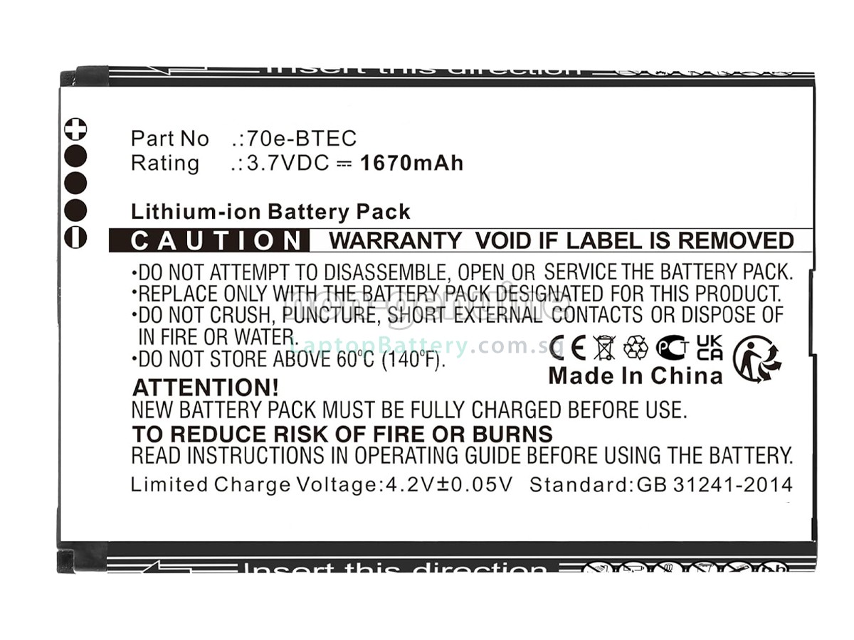 High Quality Battery for Honeywell 75E (1670mAh, 1 cells)