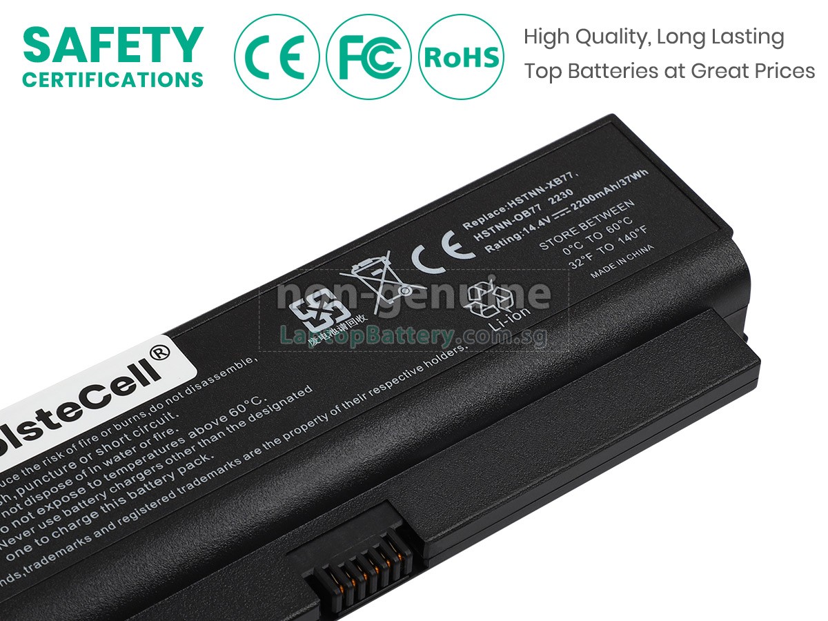 Welcome your patronage and thank you for purchasing this high quality replacement Compaq HSTNN-OB77 laptop battery at Laptopbattery.com.sg! Before placing an order, please make sure that the part number of your old Compaq HSTNN-OB77 battery is listed as below and has the same shape as our replacement HSTNN-OB77 battery's images (please view the larger images for details).