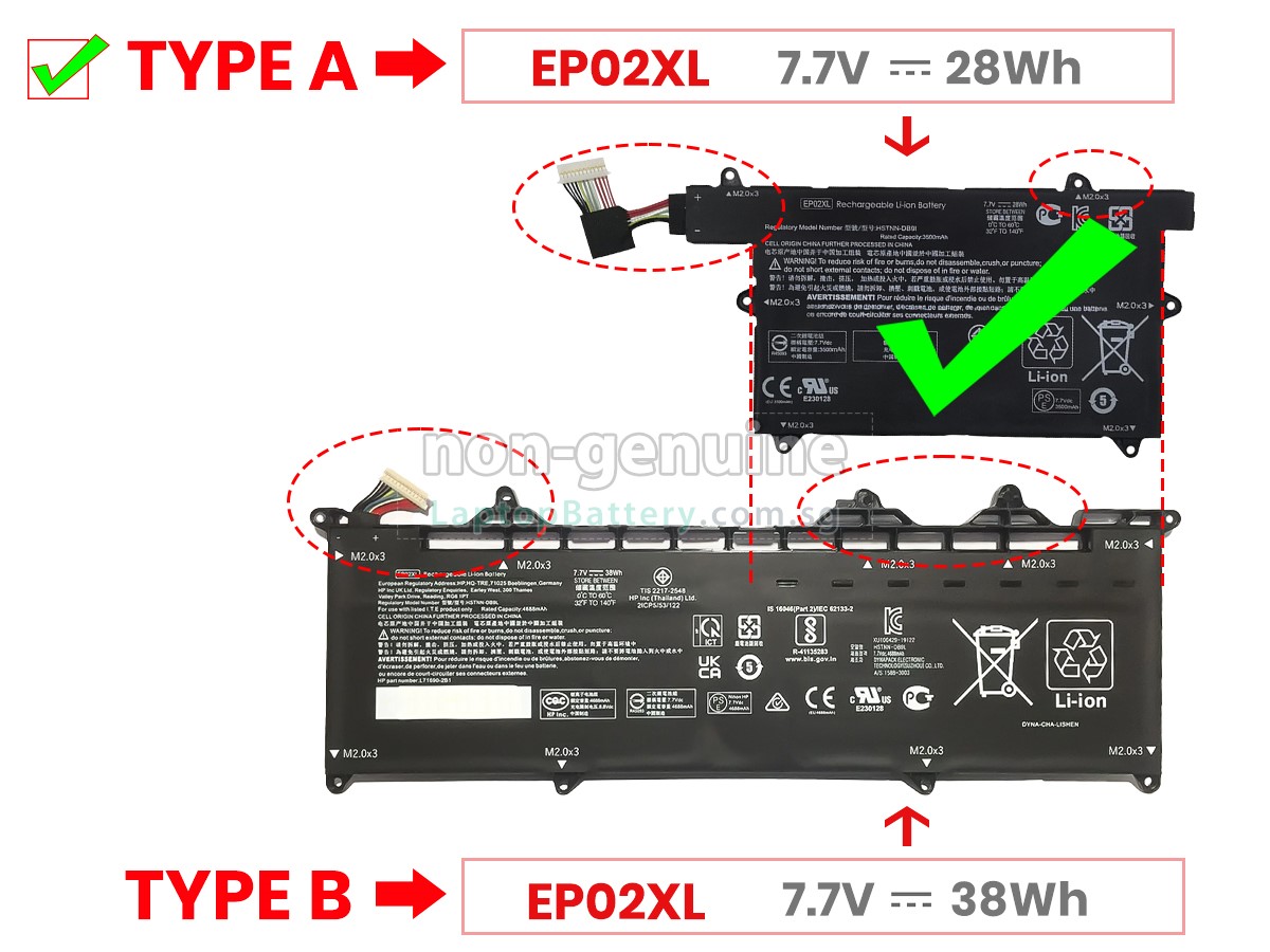 Battery EP02XL has two styles, their appearance, size, capacity are not the same compatible use, according to the primary battery purchase. - SKUSGL8536