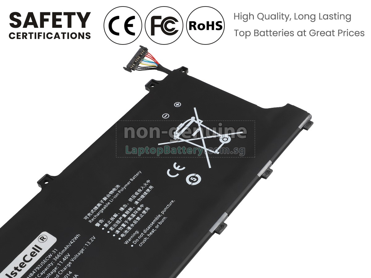 Welcome your patronage and thank you for purchasing this high quality replacement Huawei BDR-WFH9HN laptop battery at Laptopbattery.com.sg! Before placing an order, please make sure that the part number of your old Huawei BDR-WFH9HN battery is listed as below and has the same shape as our replacement BDR-WFH9HN battery's images (please view the larger images for details).