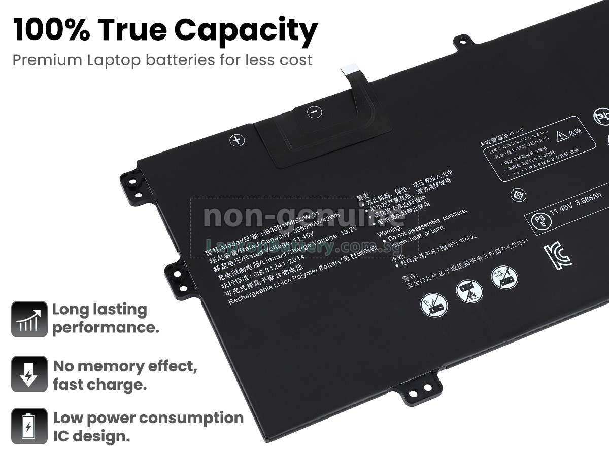 Welcome your patronage and thank you for purchasing this high quality replacement Huawei EUL-W19P laptop battery at Laptopbattery.com.sg! Before placing an order, please make sure that the part number of your old Huawei EUL-W19P battery is listed as below and has the same shape as our replacement EUL-W19P battery's images (please view the larger images for details).