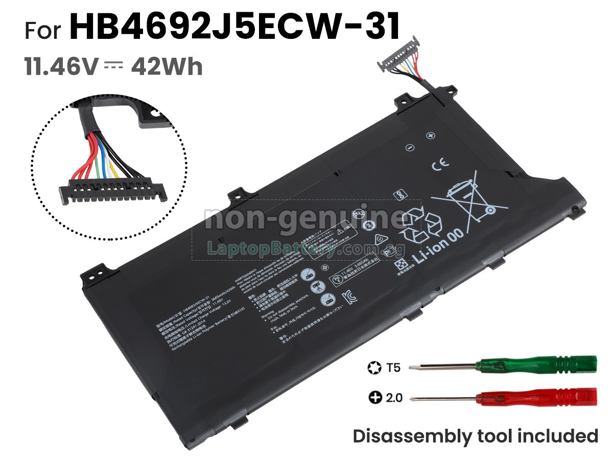 Welcome your patronage and thank you for purchasing this high quality replacement Huawei HLY-19R laptop battery at Laptopbattery.com.sg! Before placing an order, please make sure that the part number of your old Huawei HLY-19R battery is listed as below and has the same shape as our replacement HLY-19R battery's images (please view the larger images for details).
