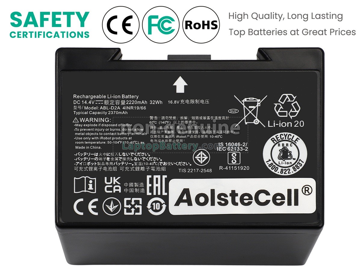 Welcome your patronage and thank you for purchasing this high quality replacement iRobot ABL-D2 vacuum cleaner battery at Laptopbattery.com.sg! Before placing an order, please make sure that the part number of your old iRobot ABL-D2 battery is listed as below and has the same shape as our replacement ABL-D2 battery's images (please view the larger images for details).