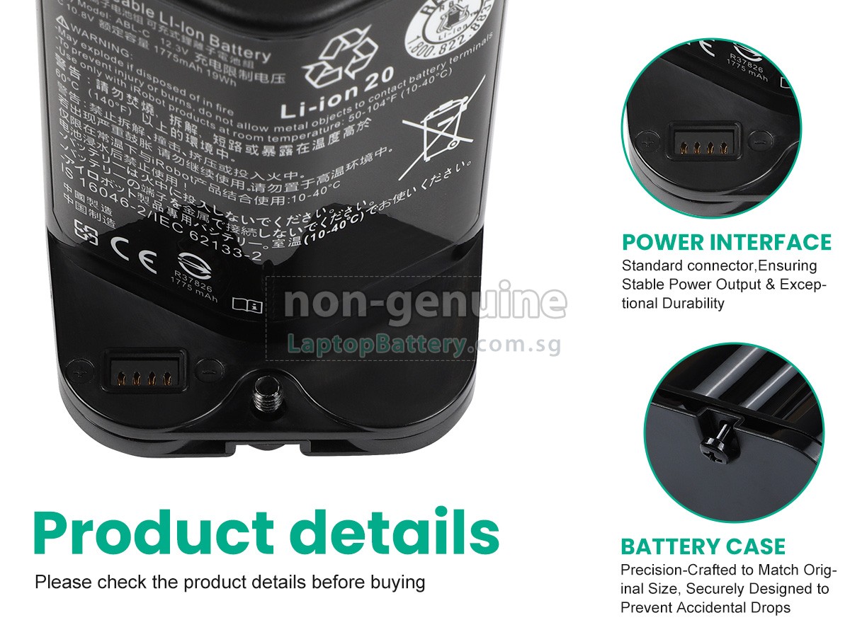 Welcome your patronage and thank you for purchasing this high quality replacement Irobot M6110 vacuum cleaner battery at Laptopbattery.com.sg! Before placing an order, please make sure that the part number of your old Irobot M6110 battery is listed as below and has the same shape as our replacement M6110 battery's images (please view the larger images for details).