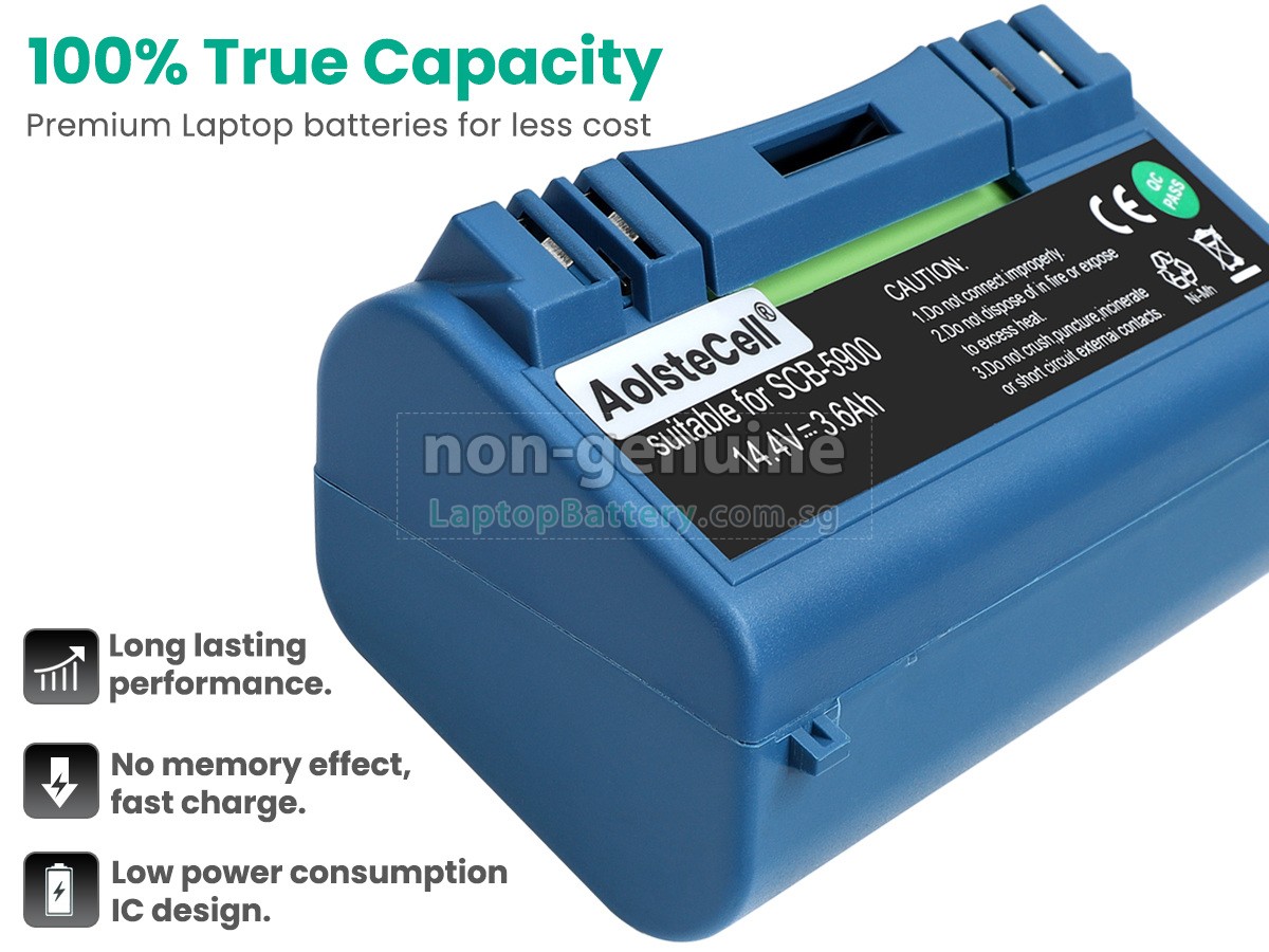 Welcome your patronage and thank you for purchasing this high quality replacement iRobot SCOOBA 380 vacuum cleaner battery at Laptopbattery.com.sg! Before placing an order, please make sure that the part number of your old iRobot SCOOBA 380 battery is listed as below and has the same shape as our replacement SCOOBA 380 battery's images (please view the larger images for details).