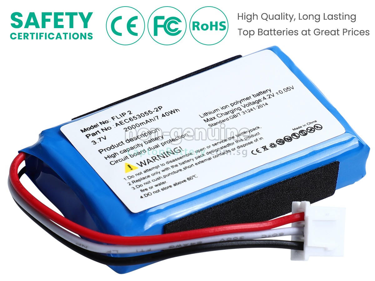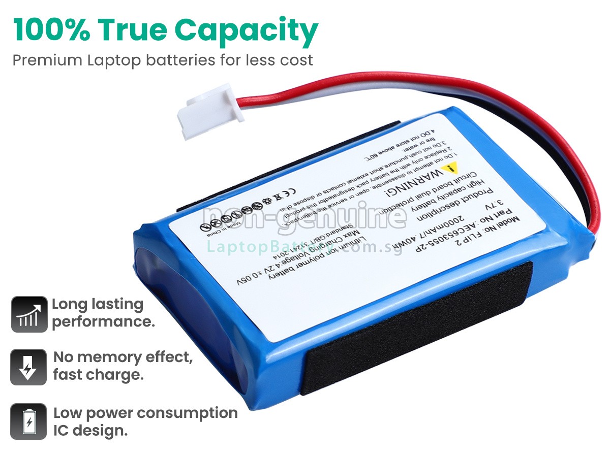 Welcome your patronage and thank you for purchasing this high quality replacement JBL AEC653055-2P speaker battery at Laptopbattery.com.sg! Before placing an order, please make sure that the part number of your old JBL AEC653055-2P battery is listed as below and has the same shape as our replacement AEC653055-2P battery's images (please view the larger images for details).