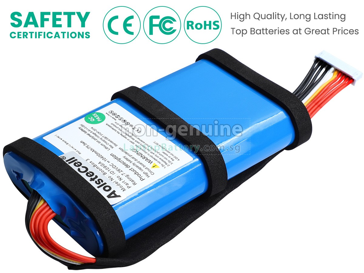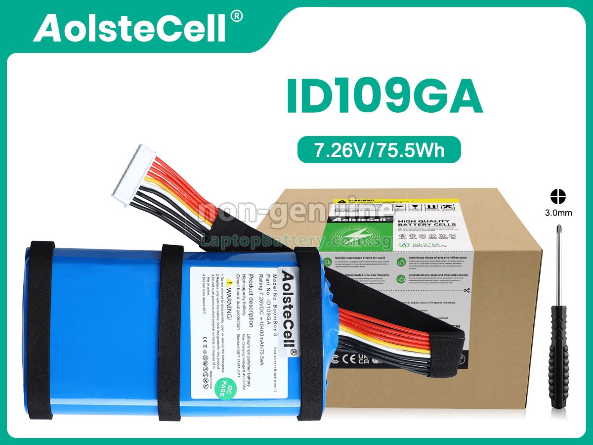 Buy with confidence! Our Website is your source for high quality JBL Speaker batteries. This brand new 75.5Wh(8 cells) replacement JBL ID109GA Li-ion battery is made with high quality cells from Samsung. Each replacement battery for JBL ID109GA speaker has been tested on the JBL system before being dispatched and is 100% compatible with the original manufacturer's specification. When you buy our replacement JBL ID109GA battery, you're buying trust!