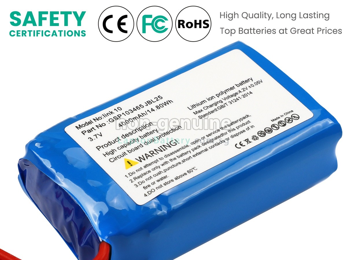 Welcome your patronage and thank you for purchasing this high quality replacement JBL LINK 10 speaker battery at Laptopbattery.com.sg! Before placing an order, please make sure that the part number of your old JBL LINK 10 battery is listed as below and has the same shape as our replacement LINK 10 battery's images (please view the larger images for details).