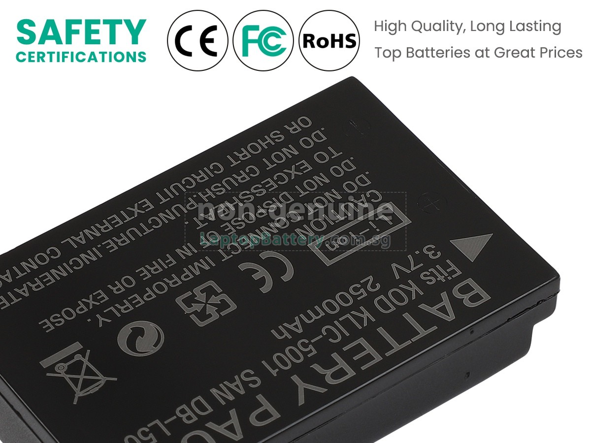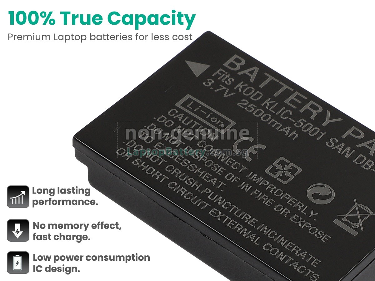 Welcome your patronage and thank you for purchasing this high quality replacement Kodak Z730 battery at Laptopbattery.com.sg! Before placing an order, please make sure that the part number of your old Kodak Z730 battery is listed as below and has the same shape as our replacement Z730 battery's images (please view the larger images for details).