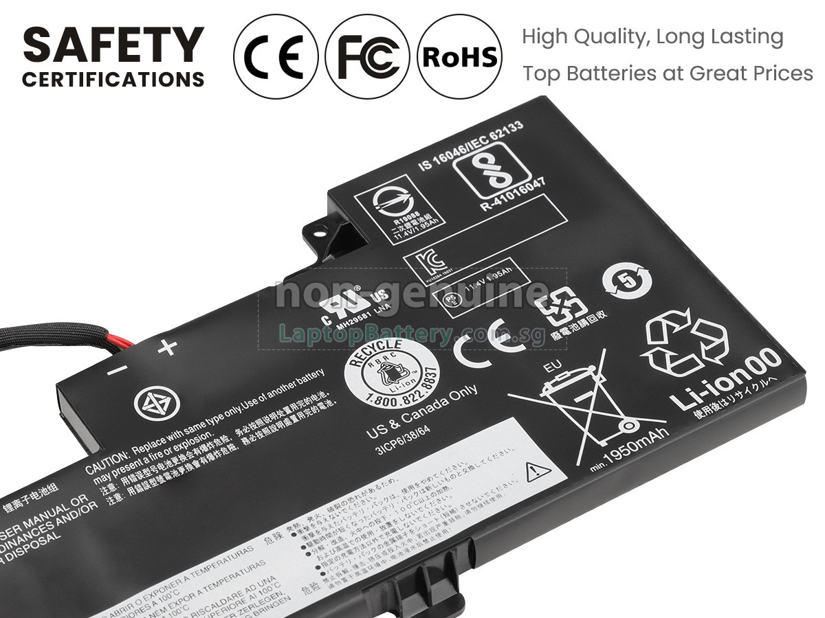Welcome your patronage and thank you for purchasing this high quality replacement Lenovo 01AV491 laptop battery at Laptopbattery.com.sg! Before placing an order, please make sure that the part number of your old Lenovo 01AV491 battery is listed as below and has the same shape as our replacement 01AV491 battery's images (please view the larger images for details).