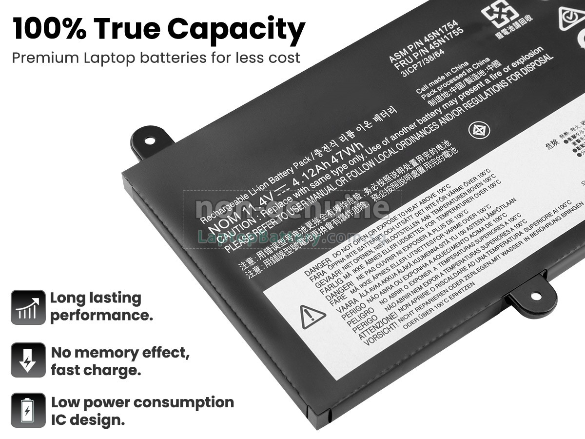 All our high quality replacement batteries for Lenovo 45N1757 laptop come with a 1-year warranty. Warranty is applicable if the buyer has installed the battery properly in the device and has treated the battery correctly.