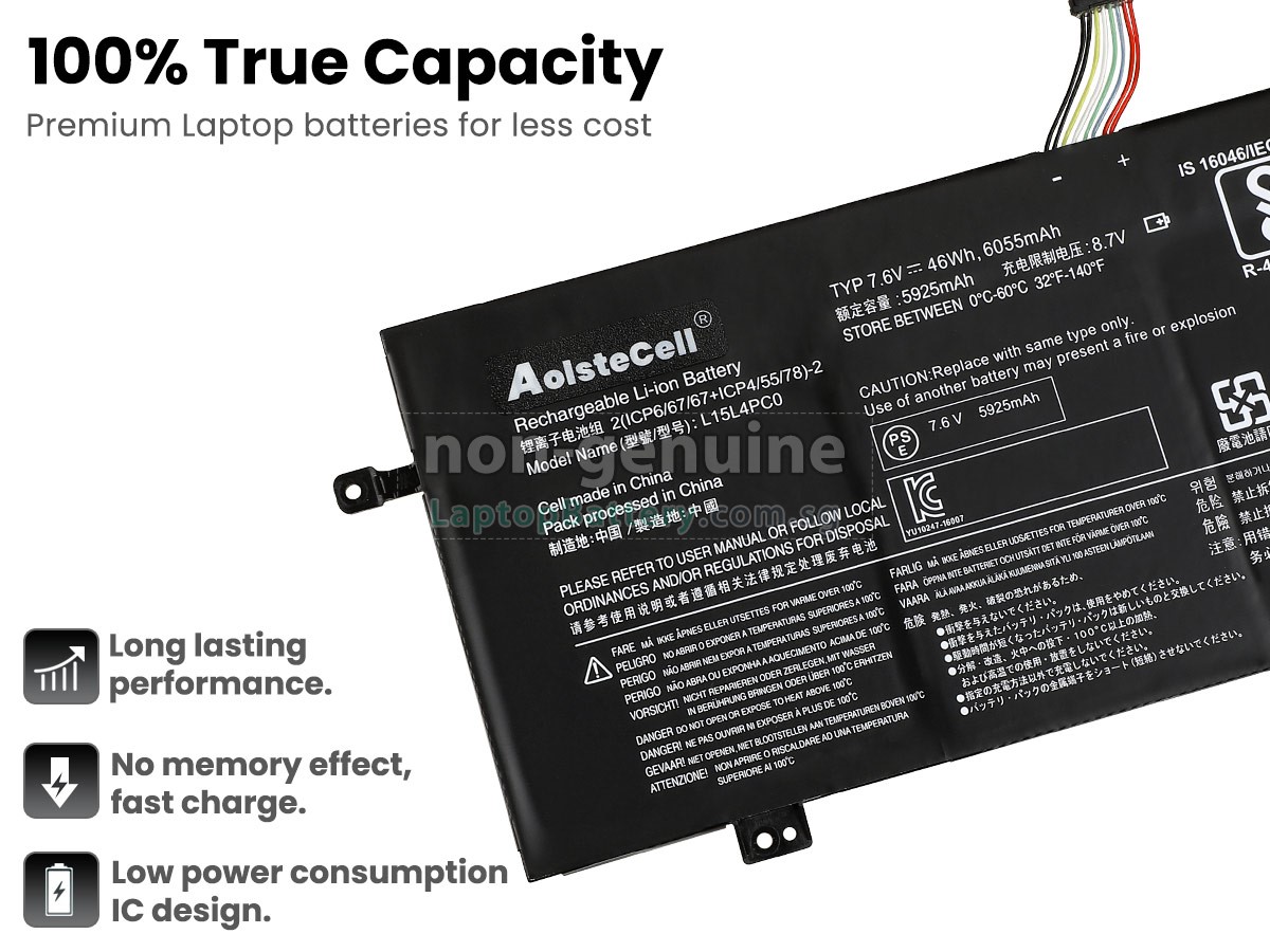 Buy with confidence! Our Website is your source for high quality Lenovo laptop batteries. This brand new 46Wh(4 cells) replacement Lenovo L15L4PC0 Li-Polymer battery is made with high quality cells from Samsung. Each replacement battery for Lenovo L15L4PC0 laptop has been tested on the Lenovo system before being dispatched and is 100% compatible with the original manufacturer's specification. When you buy our replacement Lenovo L15L4PC0 battery, you're buying trust!