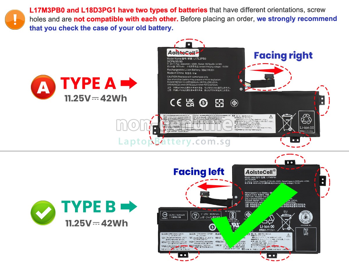 Welcome your patronage and thank you for purchasing this high quality replacement Lenovo L18D3PG1 laptop battery at Laptopbattery.com.sg! Before placing an order, please make sure that the part number of your old Lenovo L18D3PG1 battery is listed as below and has the same shape as our replacement L18D3PG1 battery's images (please view the larger images for details).