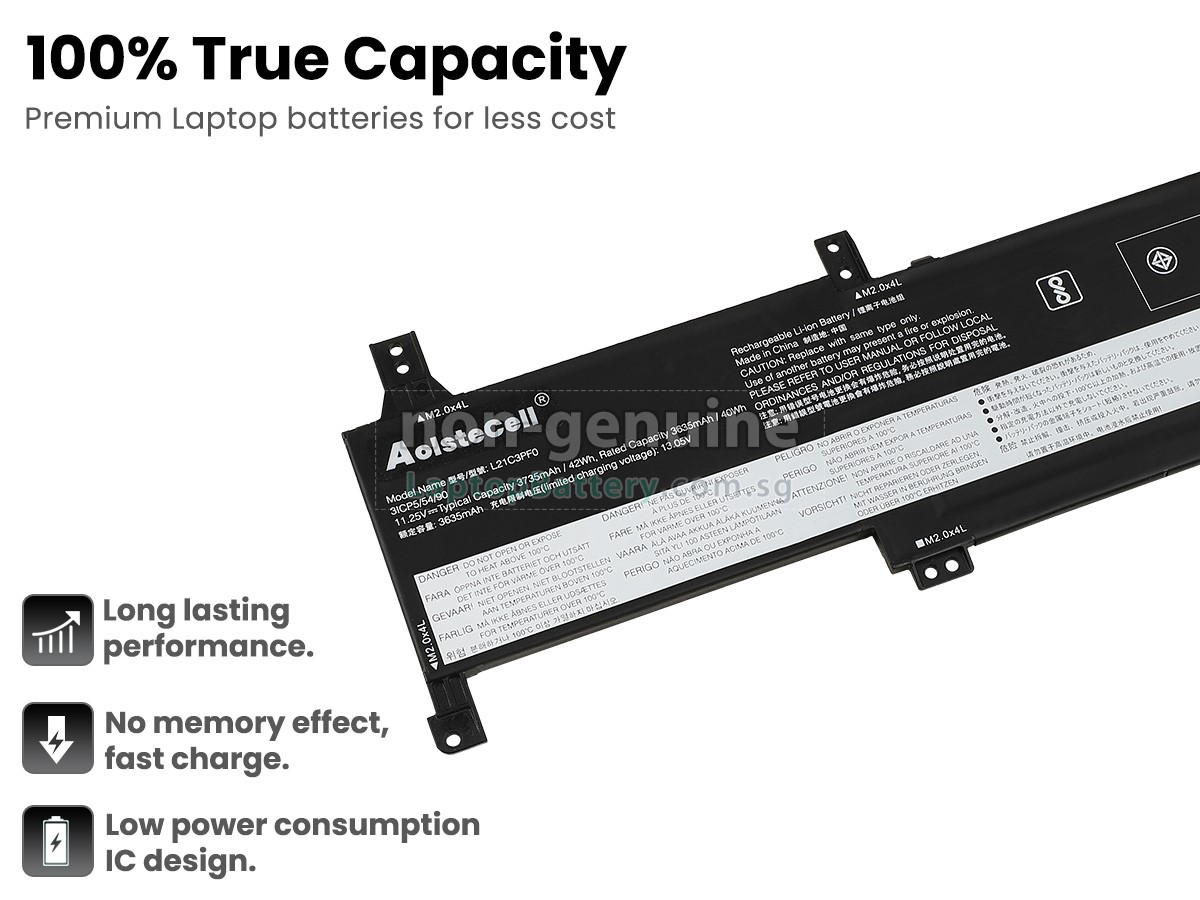 Buy with confidence! Our Website is your source for high quality Lenovo laptop batteries. This brand new 42Wh(3 cells) replacement Lenovo L21M3PF1 Li-Polymer battery is made with high quality cells from Samsung. Each replacement battery for Lenovo L21M3PF1 laptop has been tested on the Lenovo system before being dispatched and is 100% compatible with the original manufacturer's specification. When you buy our replacement Lenovo L21M3PF1 battery, you're buying trust!