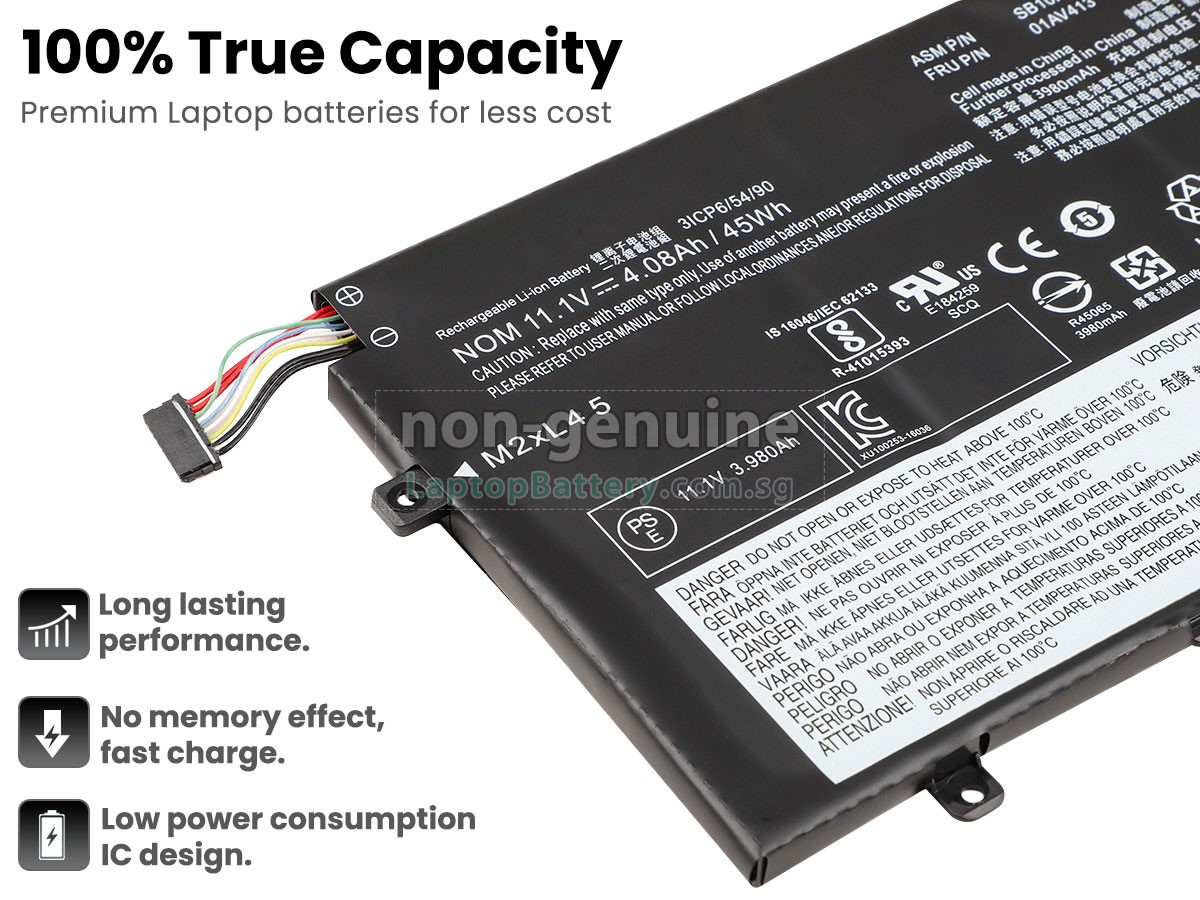 Welcome your patronage and thank you for purchasing this high quality replacement Lenovo SB10K97568 laptop battery at Laptopbattery.com.sg! Before placing an order, please make sure that the part number of your old Lenovo SB10K97568 battery is listed as below and has the same shape as our replacement SB10K97568 battery's images (please view the larger images for details).