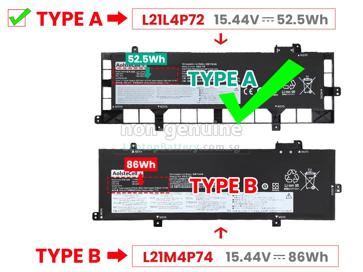 Welcome your patronage and thank you for purchasing this high quality replacement Lenovo ThinkPad T16 GEN 1-21BV006BGR laptop battery at Laptopbattery.com.sg! Before placing an order, please make sure that the part number of your old Lenovo ThinkPad T16 GEN 1-21BV006BGR battery is listed as below and has the same shape as our replacement ThinkPad T16 GEN 1-21BV006BGR battery's images (please view the larger images for details).