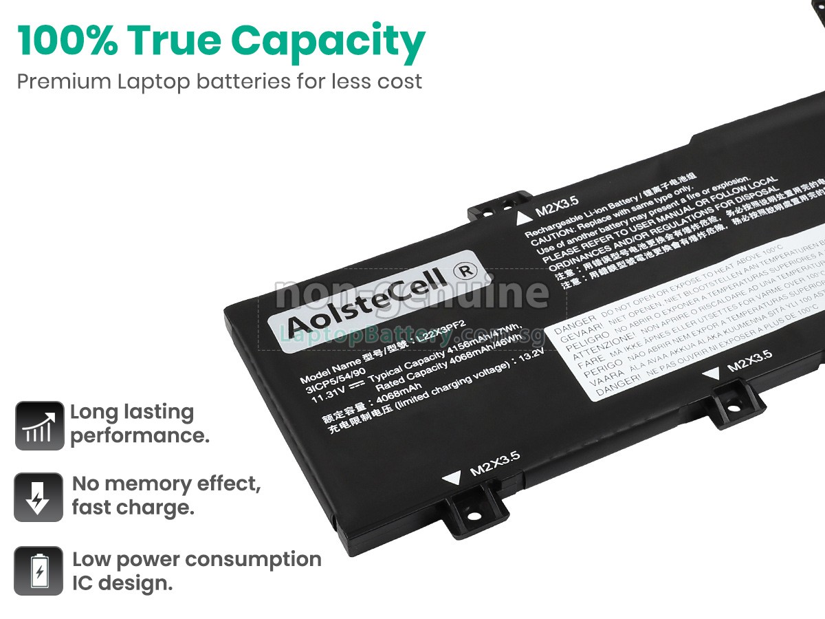 Buy with confidence! Our Website is your source for high quality Lenovo laptop batteries. This brand new 38Wh(2 cells) replacement Lenovo V15 G4 AMN-82YU000LPS Li-Polymer battery is made with high quality cells from Samsung. Each replacement battery for Lenovo V15 G4 AMN-82YU000LPS laptop has been tested on the Lenovo system before being dispatched and is 100% compatible with the original manufacturer's specification. When you buy our replacement Lenovo V15 G4 AMN-82YU000LPS battery, you're buying trust!