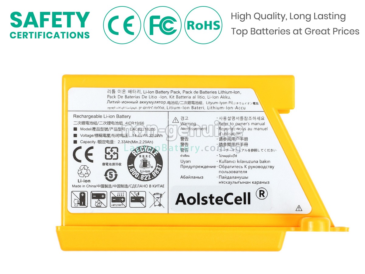 Buy with confidence! Our Website is your source for high quality LG batteries for Vacuum Cleaners. This brand new 32.9Wh(4 cells) replacement LG VR66713LVM Li-ion battery is made with high quality cells from Samsung. Each replacement vacuum cleaner battery for LG VR66713LVM has been tested on the LG device before being dispatched and is 100% compatible with the original manufacturer's specification. When you buy our replacement LG VR66713LVM battery, you're buying trust!