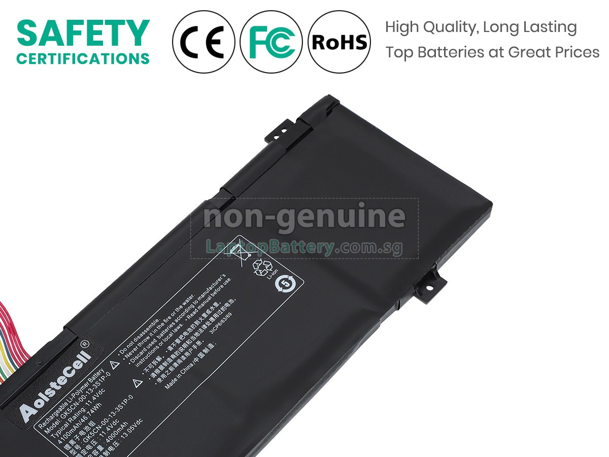 Welcome your patronage and thank you for purchasing this high quality replacement Mechrevo GK5CN4Z laptop battery at Laptopbattery.com.sg! Before placing an order, please make sure that the part number of your old Mechrevo GK5CN4Z battery is listed as below and has the same shape as our replacement GK5CN4Z battery's images (please view the larger images for details).