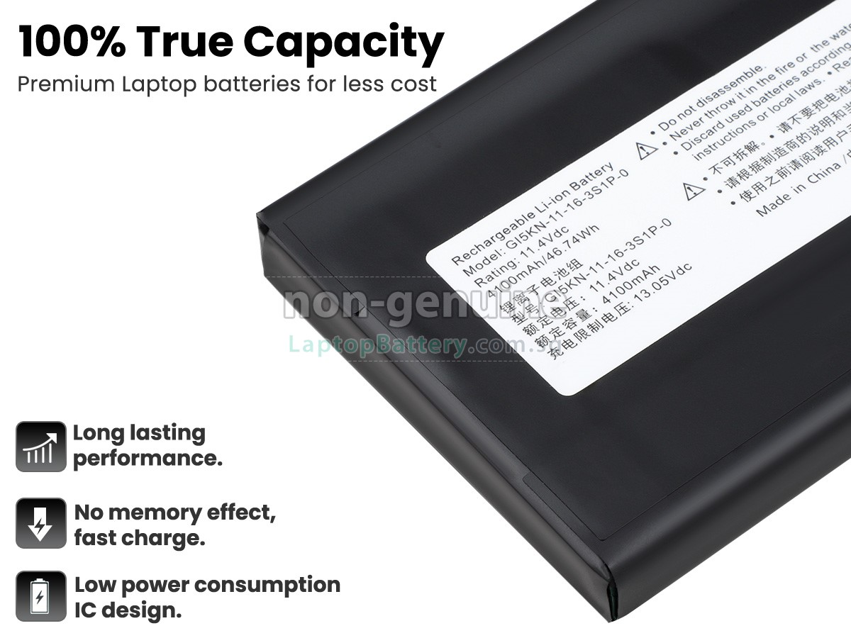 Buy with confidence! Our Website is your source for high quality Mechrevo laptop batteries. This brand new 46.74Wh(6 cells) replacement Mechrevo X1 Li-Polymer battery is made with high quality cells from Samsung. Each replacement battery for Mechrevo X1 laptop has been tested on the Mechrevo system before being dispatched and is 100% compatible with the original manufacturer's specification. When you buy our replacement Mechrevo X1 battery, you're buying trust!