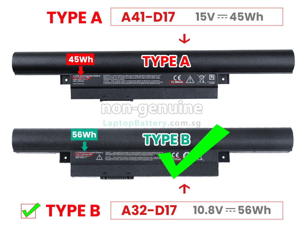 Welcome your patronage and thank you for purchasing this high quality replacement Medion MD99554 laptop battery at Laptopbattery.com.sg! Before placing an order, please make sure that the part number of your old Medion MD99554 battery is listed as below and has the same shape as our replacement MD99554 battery's images (please view the larger images for details).