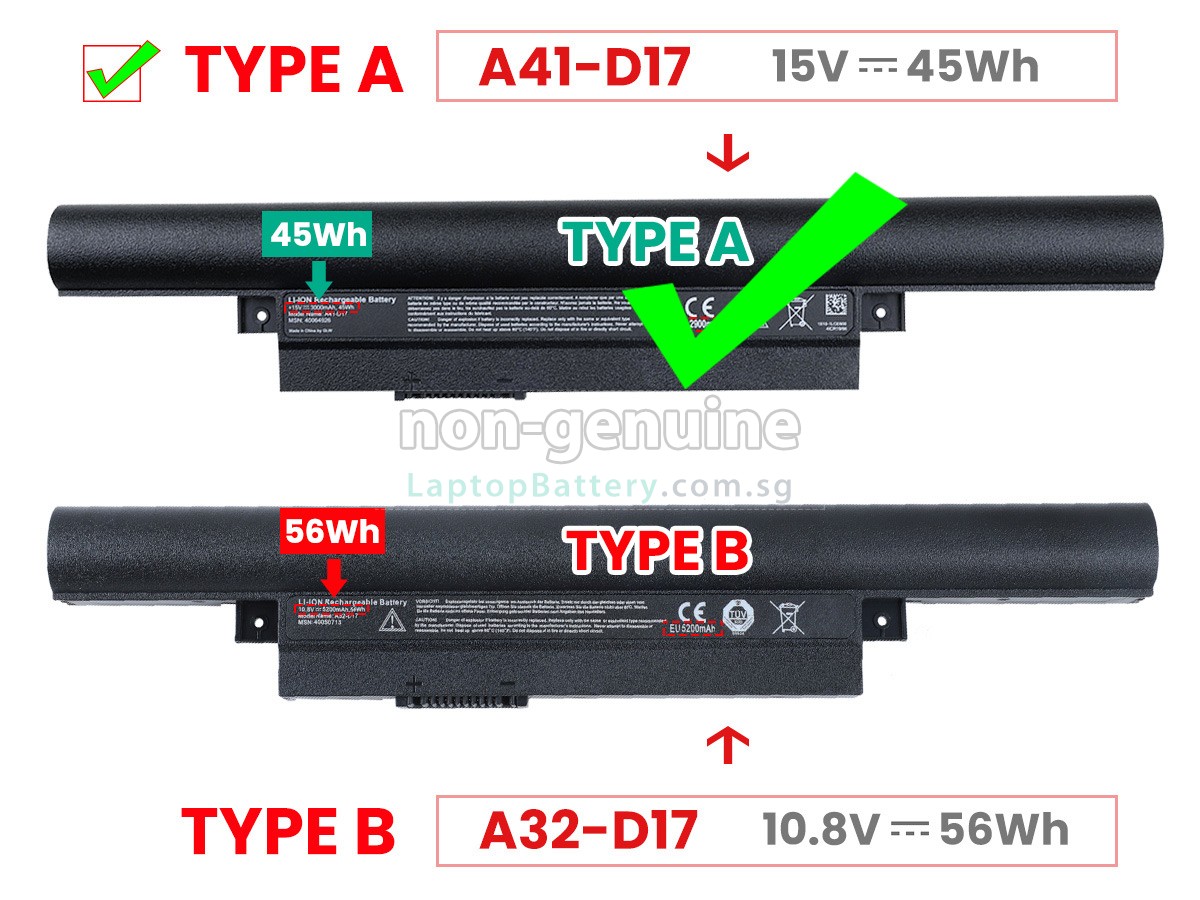 This battery can replacement for the 15V/45Wh battery. IF your laptop model is Medion Erazer P7643, Erazer P7644,Erazer P7652,Akoya E7416,Akoya E7424 please do not order this 6 cells battery. - SKUSGL2137