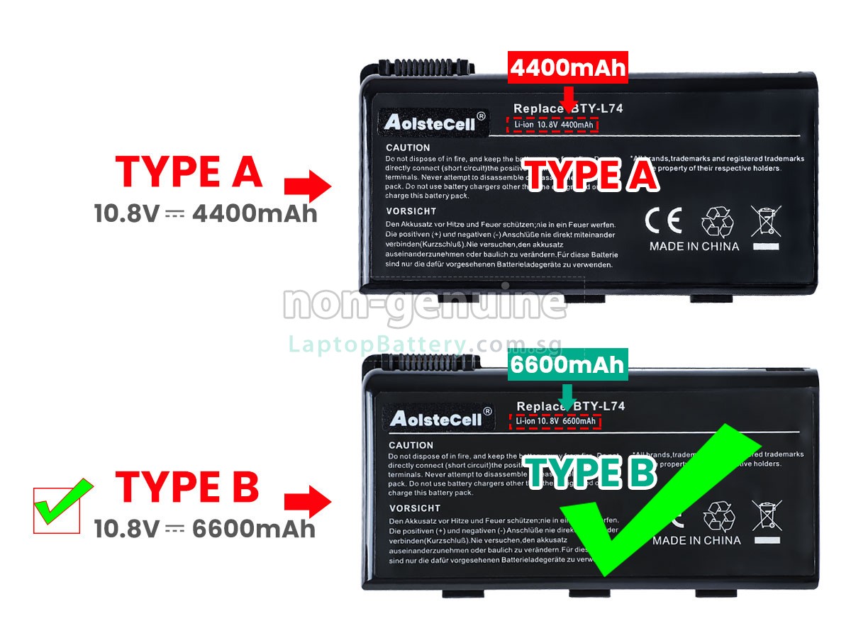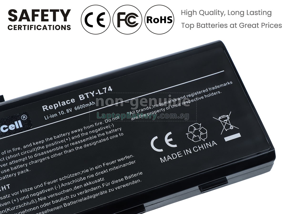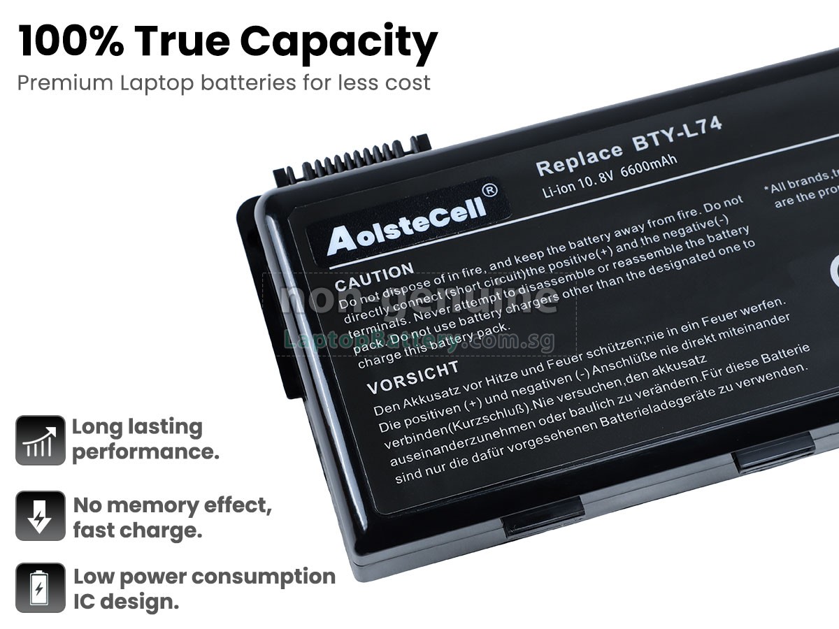 Welcome your patronage and thank you for purchasing this high quality replacement MSI A7200-027 laptop battery at Laptopbattery.com.sg! Before placing an order, please make sure that the part number of your old MSI A7200-027 battery is listed as below and has the same shape as our replacement A7200-027 battery's images (please view the larger images for details).
