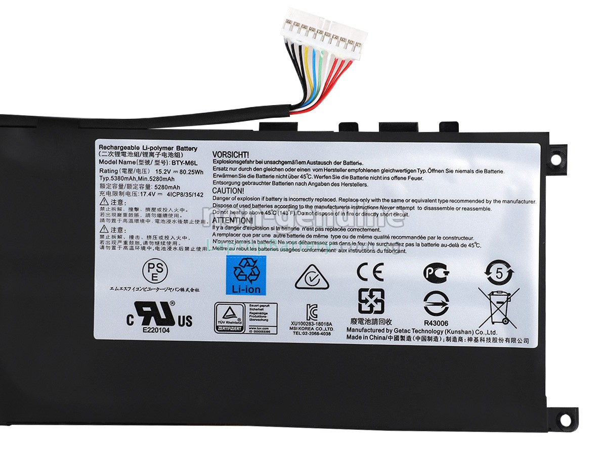 Buy with confidence! Our Website is your source for high quality MSI laptop batteries. This brand new 80.25Wh(4 cells) replacement MSI GS65VR Li-Polymer battery is made with high quality cells from Samsung. Each replacement battery for MSI GS65VR laptop has been tested on the MSI system before being dispatched and is 100% compatible with the original manufacturer's specification. When you buy our replacement MSI GS65VR battery, you're buying trust!